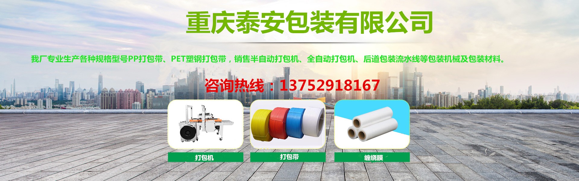 重慶泰安包裝有限公司(電話:13752918167)是專業(yè)生產(chǎn)各種打包帶、塑鋼帶、纏繞膜、膠帶,銷售打包機(jī)、纏繞機(jī)、封箱機(jī)、無人化流水線等各種包裝機(jī)械、包裝制品、包裝材料一體化的優(yōu)秀包裝企業(yè),始終堅(jiān)持“穩(wěn)步擴(kuò)張、精益管理”的方針,堅(jiān)持“換位思考,了解客戶需求,主動(dòng)服務(wù),超越客戶期待”的服務(wù)理念,以熱忱的服務(wù)、優(yōu)良的品質(zhì)、靈活的機(jī)制、創(chuàng)新的技術(shù),向各新老客戶提供最優(yōu)質(zhì)、優(yōu)價(jià)的產(chǎn)品和服務(wù),具有對系列產(chǎn)品自主研發(fā)創(chuàng)新能力,能夠獨(dú)立根據(jù)用戶要求制版打樣。近十年來受到廣大客戶的信任,產(chǎn)品銷售遍及全國各大城市,與客戶形成自由平等、互利互惠的戰(zhàn)略合作關(guān)系,平均年銷售量2000多噸。
